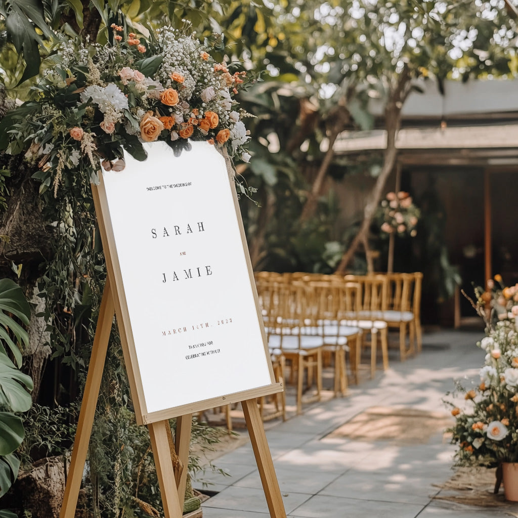 Welcome your guests with this elegant welcome design. This sign can be fully customised with your preferred wording, fonts and colours to match your wedding. Enjoy hassle-free customisation for no extra charge! Delivered as a PDF.