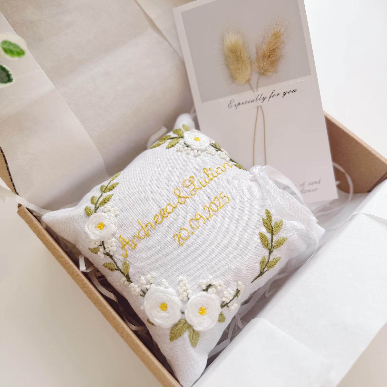 This piece is not just a ring holder—it’s a heartfelt keepsake of your big day. Each pillow is one-of-a-kind and made with love and care.