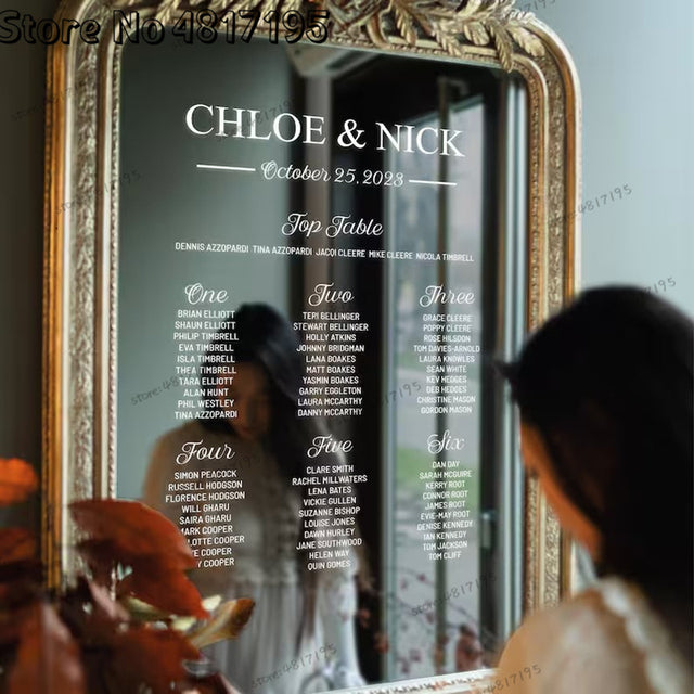 Add a personalised, elegant touch to your wedding with this custom seating chart vinyl decal. Made from high-quality, non-toxic PVC, this easy-to-apply, matte-finish decal is perfect for smooth surfaces like mirrors, walls, windows, and more. Ideal for displaying your seating arrangement, it adds sophistication to your ceremony or reception. The self-adhesive design is easy to install and can be removed without damaging surfaces. Customise your wedding décor with this stylish and practical seating chart sticker.
