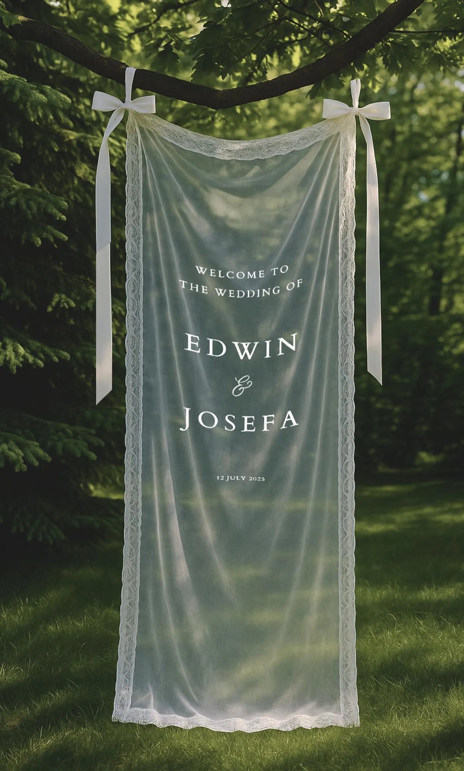 Welcome your guests in style with this dreamy sheer wedding sign – now elevated with delicate lace trim. Made from soft tulle and finished with romantic lace edges, this banner brings a classic yet modern touch to your ceremony entrance, garden aisle, or photo backdrop.